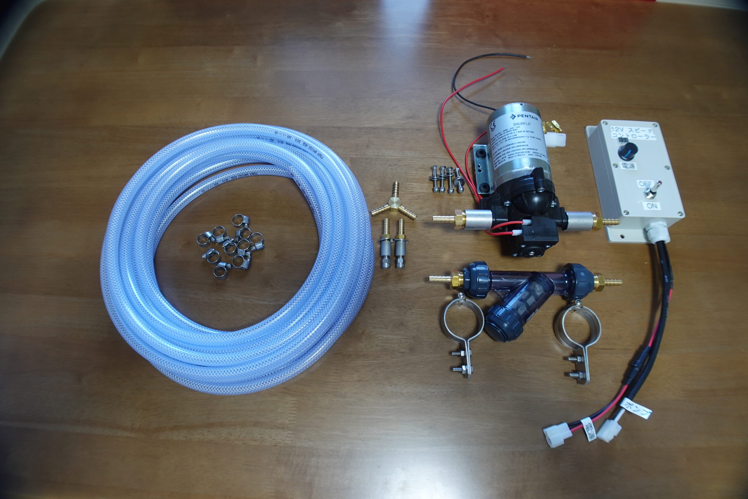 | セット内容 12Vポンプ×1、ストレーナー×1、スピードコントローラー×1、ブレードホース10m、添加ノズル×2、付属品×1 |